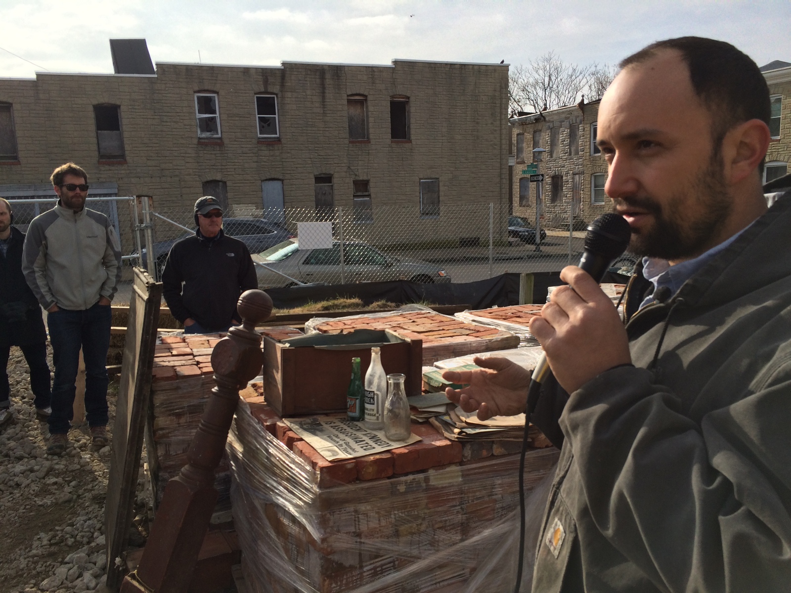 Over thirty people braved a chilly December morning this past Saturday and enjoyed our tour of the Details Deconstruction project site on East Eager Street. Special thanks to Max Pollock, Jeff Carroll and the members of the deconstruction crew who hosted our tour! Thank you also to Michael Braverman from the Baltimore City Department of Housing who generously shared valuable context on the future of the site and the importance of this pilot deconstruction project to the city’s efforts to address vacant and abandoned housing in Baltimore.