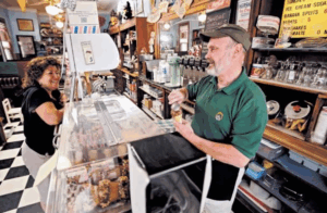 It would soon open back up a year later as an old fashioned malt shop. Mr. Gallion got the idea to open a soda fountain shop when he realized that the former owner had stopped operating but had kept the old Tennessee Marble soda fountain, a lasting relic from the early days of the pharmacy. Mr. Gallion successfully repaired the soda machines and opened the soda fountain and ice cream shop, calling it “Earl’s Old Malt Shop.”